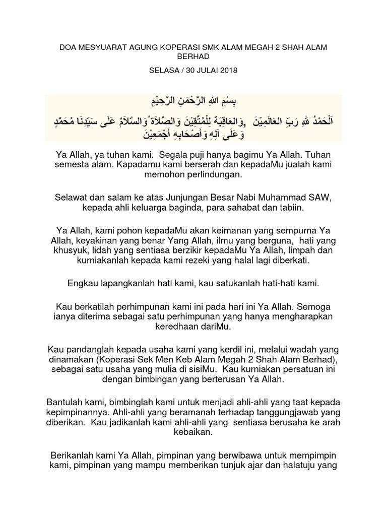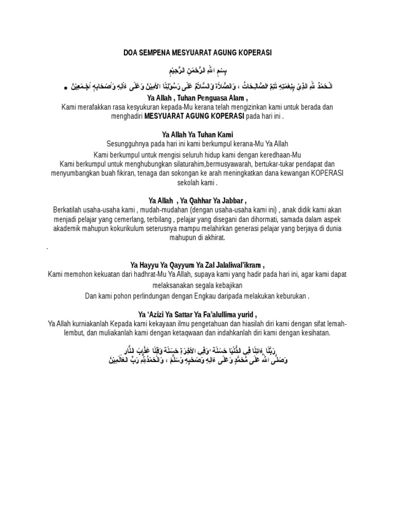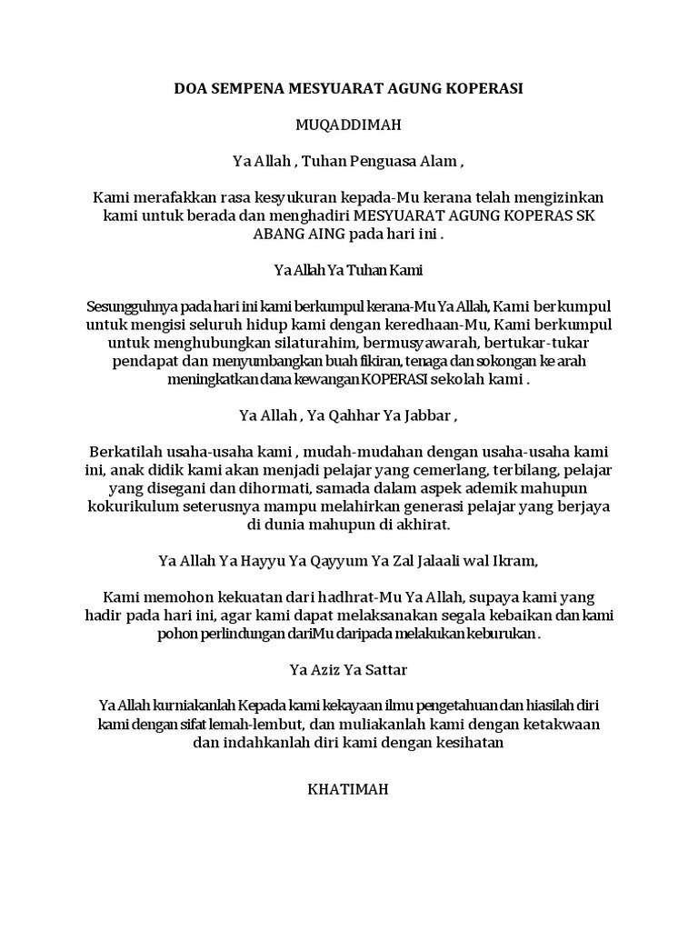Doa Sempena Mesyuarat Agung Koperasi Pdf